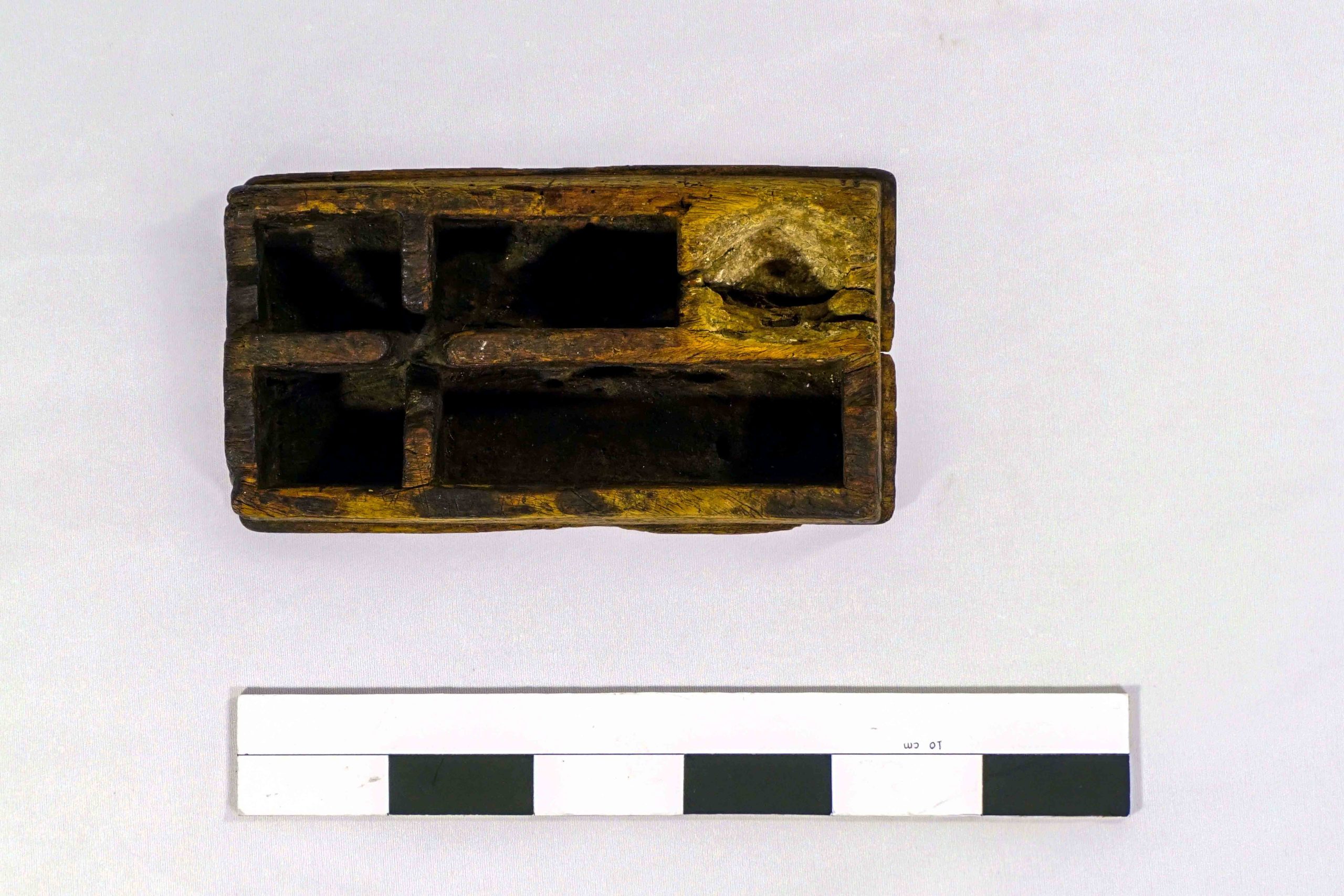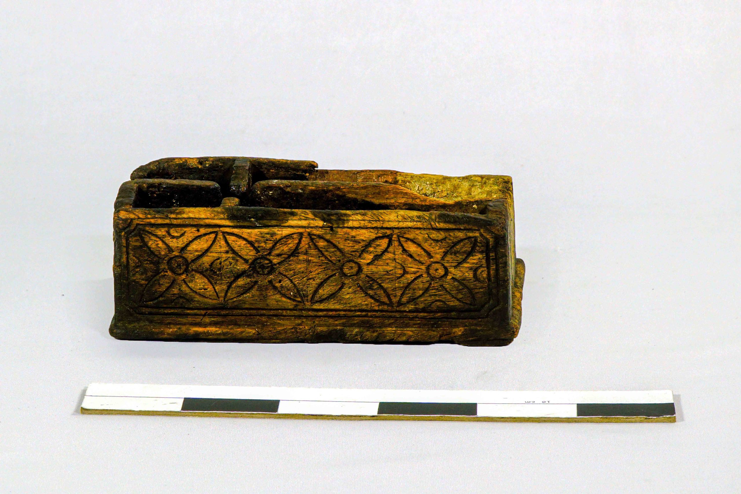 Penginangan ini berbentuk kotak terbuka dengan sejumlah sekat, dimana salah satunya masih menyisakan kapur sirih yang telah mengeras. Meski berbahan kayu, namun bagian luarnya diukir motif kawung. Motif ini memiliki filosofi sakral dan suci sehingga dulu hanya boleh digunakan oleh sosok yang dianggap bijaksana.